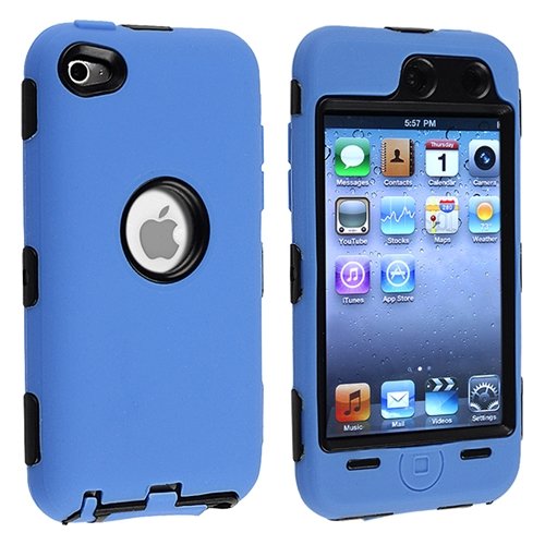 1X Hybrid Case compatible with Apple ; iPod touch ; 4th Generation, Black Hard / Blue Skin Keep your Apple ; iPod touch ; 4th Generation safe and protected in style with dual-layered protective accessory case Slip your MP3 player in to add a splash of color and deliver instant all-around protection from scratches Constructed from smooth, treated silicone that resists dirt and stains Unique design allows easy access to all buttons, controls and ports without having to remove the skin Removable silicone layer protects top, back, sides and bottom of iPod ; to provide extra security against bumps and falls Shock absorbent Color: Blue Skin / Black Plastic Material: Silicone / Hard plastic Size: Perfect fit Accessory ONLY; MP3 player not included. Apple ; does not endorse use of these products.