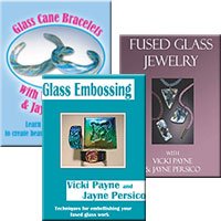 Collect all 3 of Jayne Persico's jewelry crafting DVD series. Titles include GLASS EMBOSSING, FUSED GLASS JEWELRY, and GLASS CANE BRACELETS.