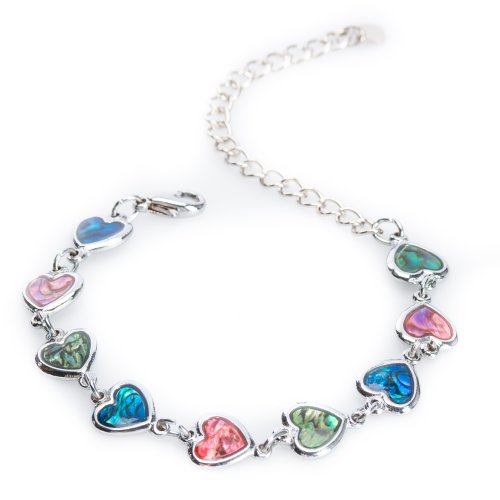 Silver Paua Shell Heart Link Anklet by Jewely Nexus best price:$24.99 (40% discount)